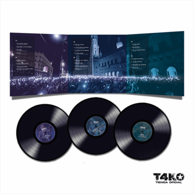 DIRECTO XL, el nuevo disco en directo de Tako grabado el pasado 14 de octubre de 2022 en la Plaza del Pilar de Zaragoza, con el que celebran sus 40 años de trayectoria. Edición en formato de triple vinilo. Incluye un USB con el concierto íntegro en formato DVD.
